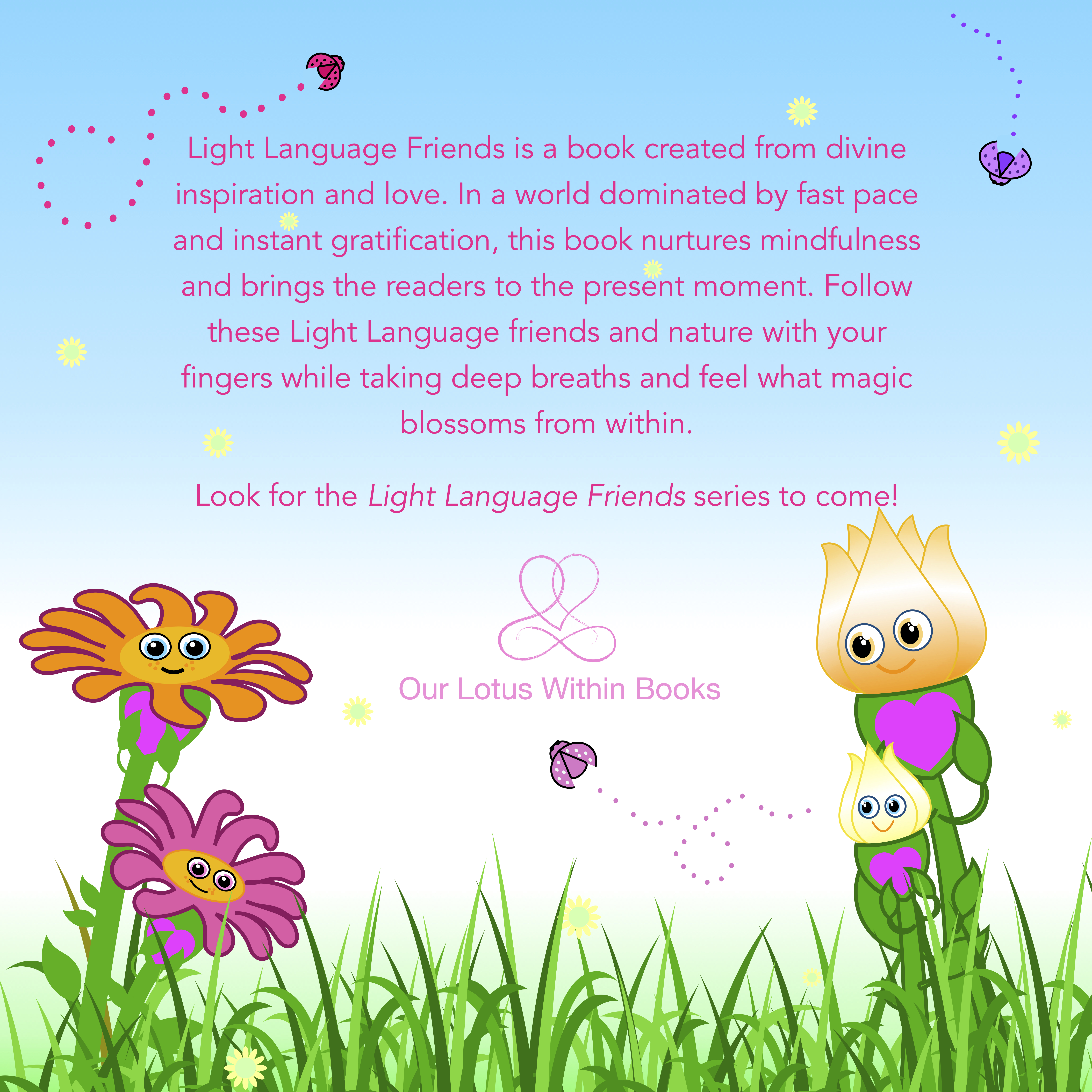 Let’s start raising spiritually aware children. Our children are already spiritually attuned and need us to help them further cultivate it. In this day and age, we are all too easily distracted by the what is around us. We need to nurture our children’s innate powers by helping them look within themselves. Let’s start here, with this book. I hope this book will strengthen and expand each person’s connection to their soul’s essence and deepen the connection between the parent and child as you both incorporate this book into your spiritual journey.